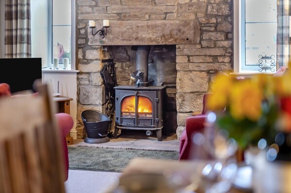 - Wood burner (first basket of logs supplied)
