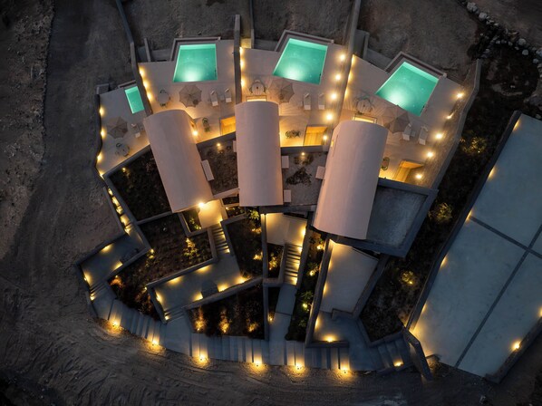 Bay View Santorini offers 4 air-conditioned accommodations, which are accessible via exterior corridors and feature private pools and espresso makers. Rooms open to furnished lanais. Accommodations offer separate sitting areas. Beds feature pillowtop mattresses. Kitchens offer refrigerators, stovetops, microwaves, and cookware/dishes/utensils. Bathrooms include showers with rainfall showerheads, bathrobes, slippers, and complimentary toiletries.