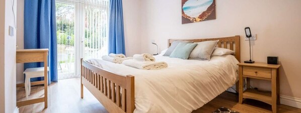 Fir is a charming 1 bedroom ground floor apartment with all the essentials you need for the perfect self-catering holiday getaway! This apartment has been designed with modern and stylish touches throughout offering a relaxing environment for holiday makers. There’s an option to cook in your fully equipped kitchen with an open plan sitting / dining area, perfect to relax and unwind after a busy day exploring. The master bedroom is spacious with a contemporary bathroom and walk in shower. The french doors for your living space and master bedroom let in an abundance of light, and on sunny days you can throw them open and step onto your very own furnished terrace for a breath of fresh air and alfresco dining.