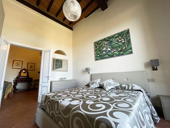 Both rooms are large and bright with very characteristic beamed ceilings and enjoy a splendid panoramic view over the center of Siena.