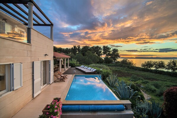 Villa Gumonca is exclusively designed 6 bedroom seaside villa with heated infinity swimming pool, outdoor jacuzzi hot tub and 250m2 sea view terraces, located just few meters from the beach!! Offering high level of personalized service, luxury equipped and surrounded with eco gardens - this is a place for true well-being...