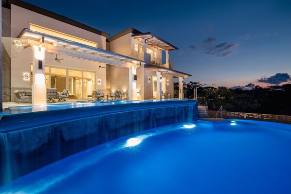Imagine waking up to views of the beautiful Pacific Ocean and Tamarindo Bay. Diving into the enormous pool, or gliding down the slide while friends and family look on from the underwater pool window in the basement. Unwind by playing a game of foosball, ping pong, or watching movies in the comfortable, air-conditioned entertainment lounge while making drinks in the kitchenette with its own mini fridge and industrial ice maker.