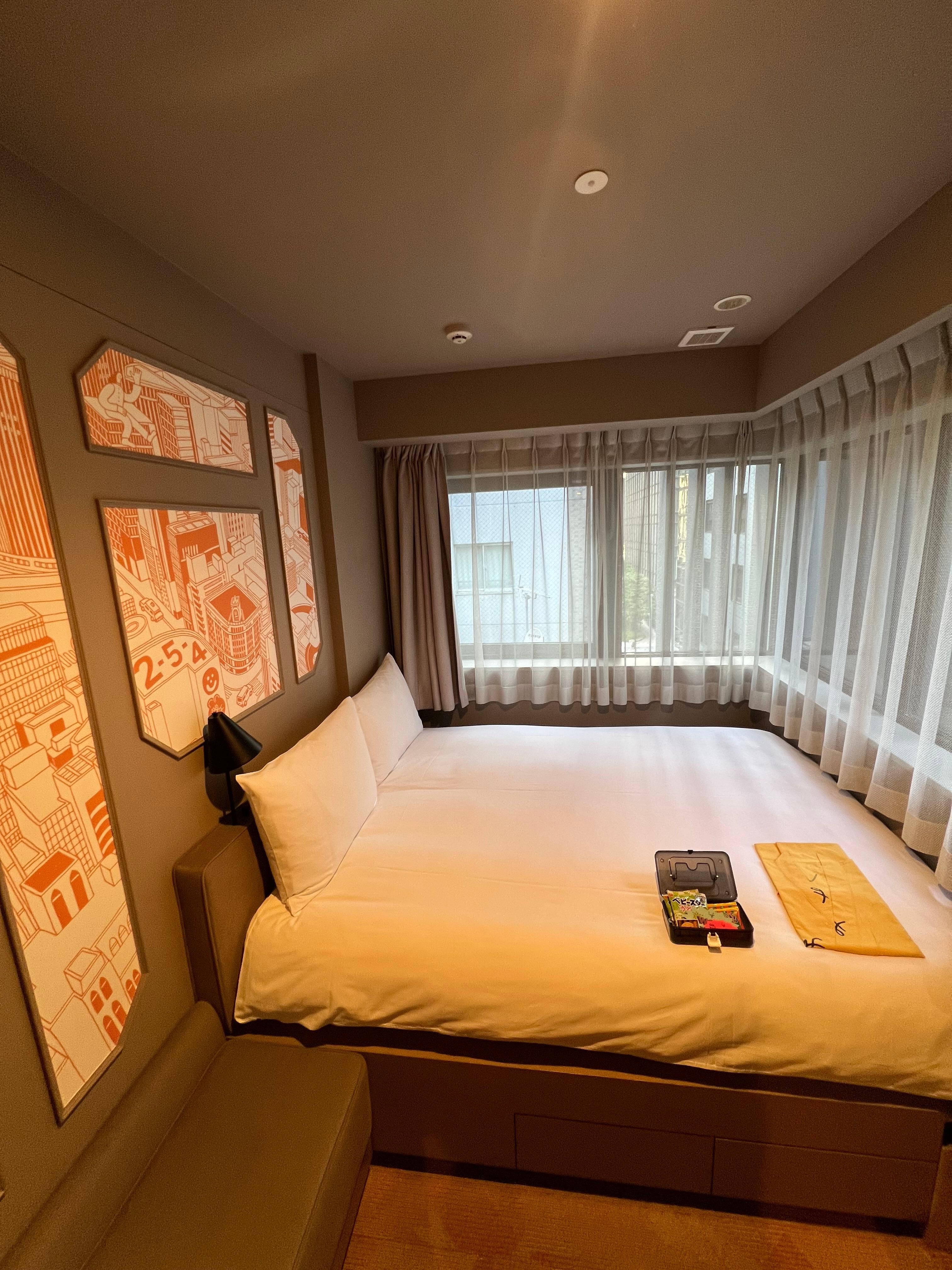 Excellent ramen shop right outside the entry, multiple convenience stores and metro stations. Comfy beds and pillows, they really maximized the available space in the rooms and overall the hotel has a fun design.