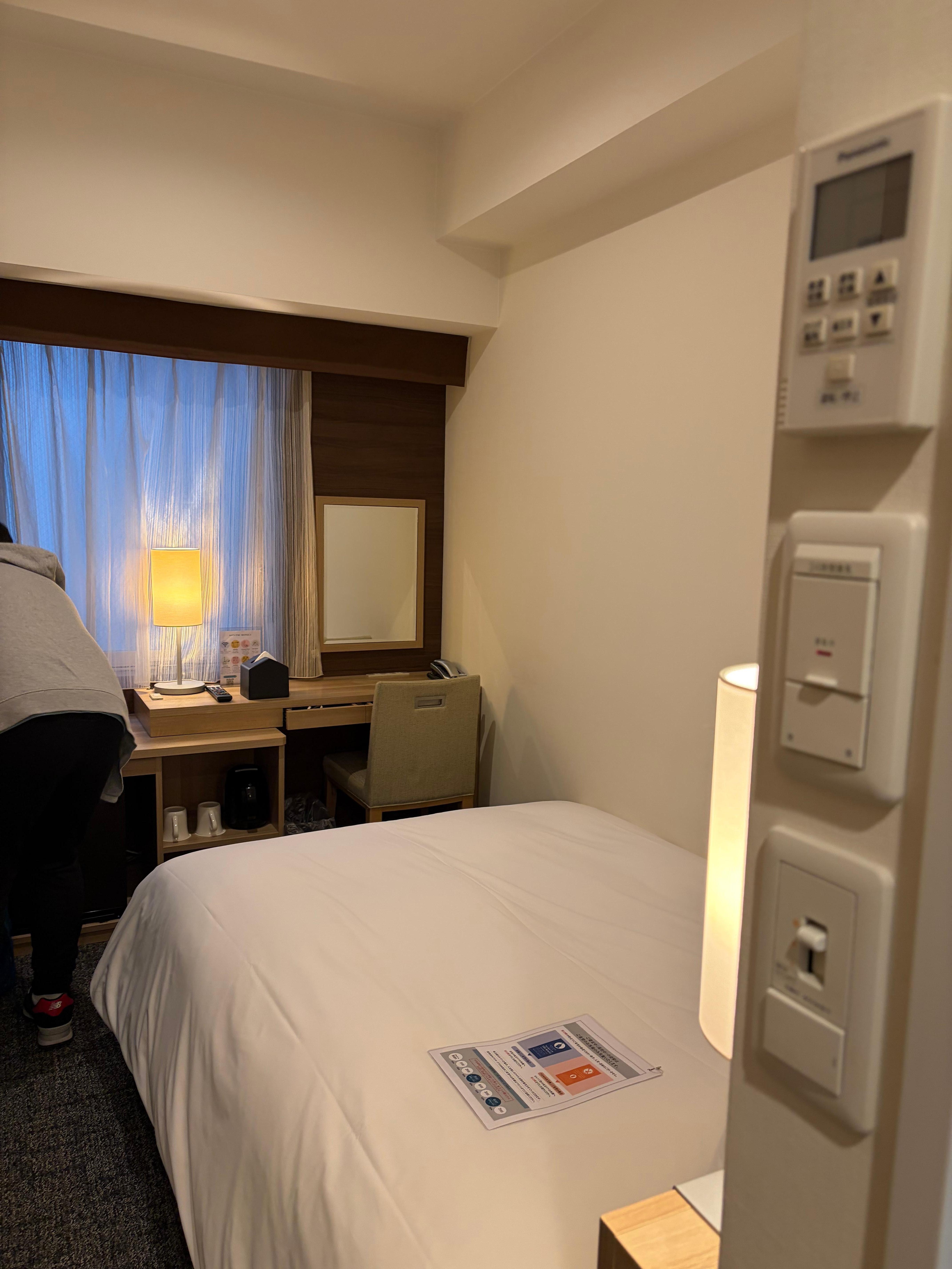 The room had everything I needed. It was clean and quiet :) ... and the staff was polite and helpful. Also close to Kanda subway station so it makes it easy to get around