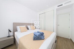 • 2 bright bedrooms with queen-size beds, soft pastel linens, and 2 modern bathrooms (1 en-suite)