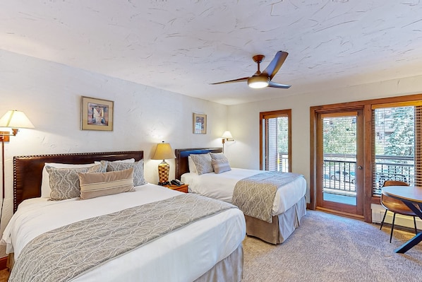 Prepare to relax in a hotel-style condo with a private balcony! This condo has a view of the village below, perfect for enjoying breakfast or a glass of wine together while contemplating your plans for tackling the mountain. Details like a stone countertop in the bathroom and a built-in kitchenette unit set this room apart in a luxurious way. As guests of this room, you'll enjoy access to our shared amenities (such as hot tubs and the outdoor heated pool) during your stay.