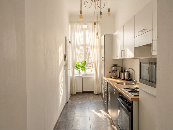 The apartment provides a refrigerator and a microwave, plus free WiFi and a stovetop. An electric kettle and a hair dryer are among the other amenities available to guests. The bathroom is shared.
