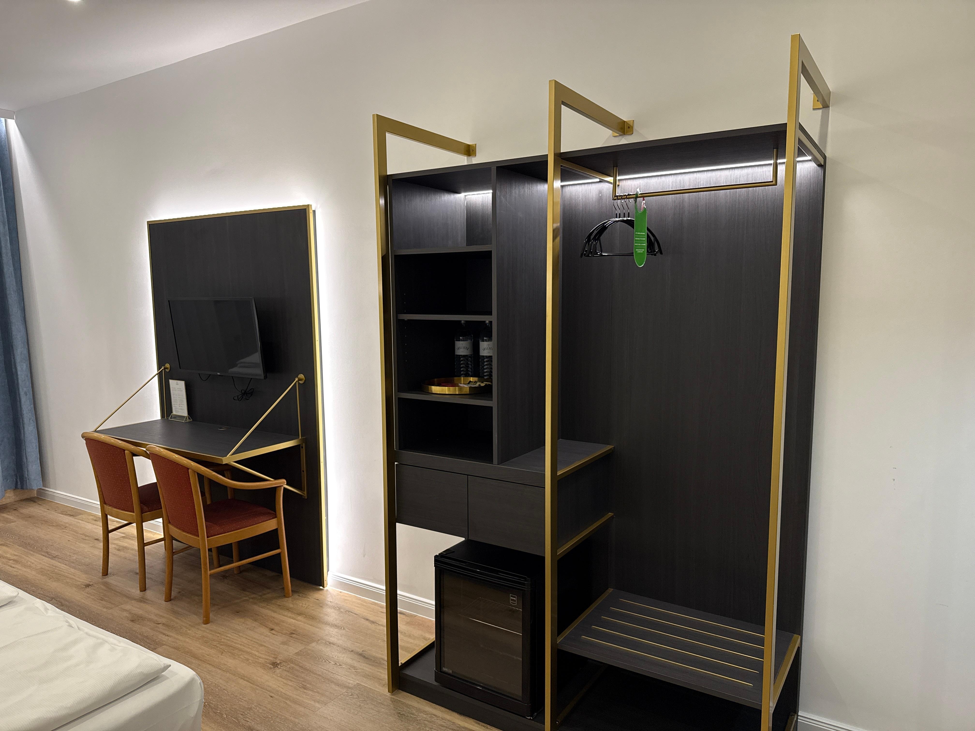 Wardrobes/closets, mini fridges, and electric kettles