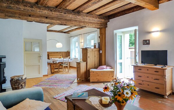 Your holiday home is just a few minutes' walk from the centre of the beer village of Weißenbrunn. This unique holiday apartment is located in the building of an old Rothmühle mill. At over 450 years old, it is the oldest house in the Franconian municipality of Weißenbrunn. The holiday apartment is modern and also furnished with many historical objects from the mill era - a perfect combination of tradition and modernity. In the lovingly furnished and fully equipped kitchen you can cook with modern appliances or prepare your meals traditionally with the wood-burning stove. You can prepare your coffee with either the filter or Nespresso coffee machine or with an espresso maker. You can spend relaxing hours in the cosy living and dining area with wooden ceiling. The wood-burning stove provides additional cosiness and warmth. The bathroom is newly renovated and has a shower, washbasin and WC as well as a bidet. There is a garden behind the house that you can use. You can end the evening here by the fire in the fireplace.