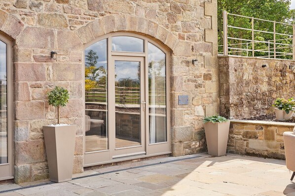 • The décor is light and neutral, with soft furnishings and large windows overlooking the surrounding garden and countryside.
